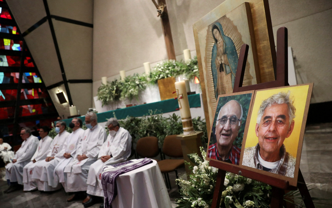 Sacerdotes durante ceremonia tras el asesinato de dos Sacerdotes. La Iglesia Católica ha criticado al gobierno México por estos acontecimientos.
