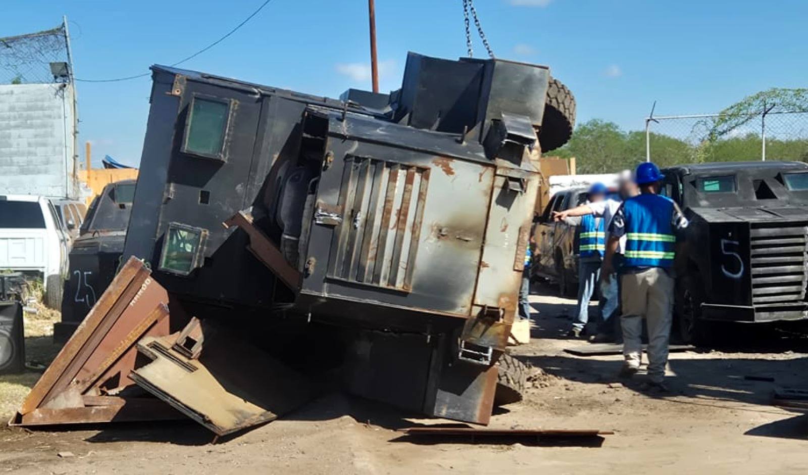 La Fiscalía General de la República, a través de la Fiscalía Especializada de Control Regional en Tamaulipas, en cumplimiento del Programa “Destino de Bienes y Objetos del Delito”, ha destruído al menos 23 vehículos con blindaje artesanal de los denominados “monstruos”.