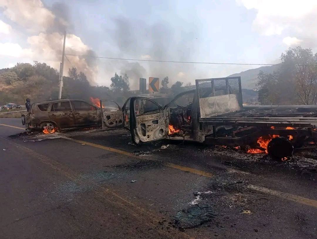 Por lo menos 25 unidades incendiadas y unos 17 tramos carreteros bloqueados por el crimen organizado después de un operativo policial que buscaba detener a un presunto objetivo delincuencial.