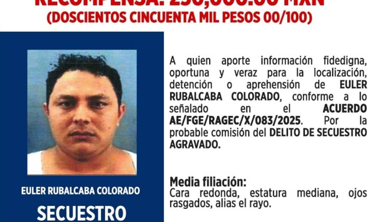 La FGET mantiene vigente la recompensa de 250 mil pesos para quien aporte información que lleve a su captura.