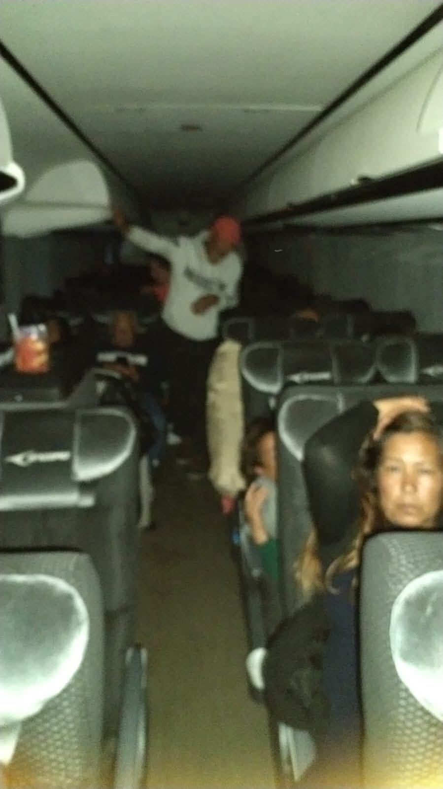 “Quiero denunciar una arbitrariedad porque poncharon las llantas de los camiones en los que viajamos”, denunció Adame por la vía telefónica. En las imágenes se pueden ver los autobuses varados en la carretera, con llantas ponchadas y personas esperando en el interior de las unidades.