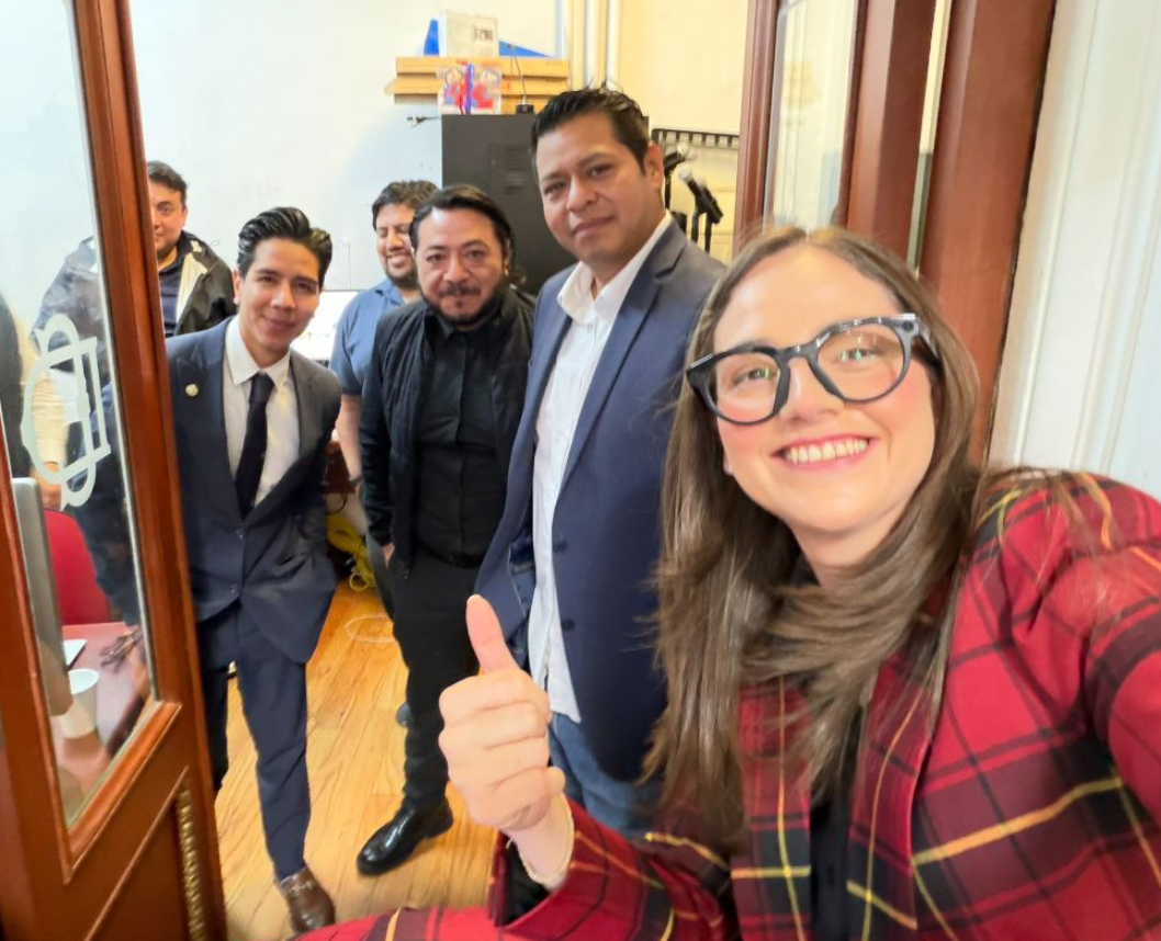 Larios publicó un mensaje en su cuenta de X en el que aparece con el personal de la cabina de audio del Congreso y el siguiente mensaje: