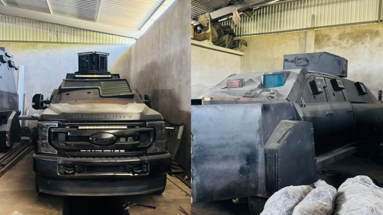 Una bodega empleada presuntamente para la fabricación de los vehículos con blindaje artesanal fue asegurada por agentes de seguridad estatal en el municipio de Coahuayana, Michoacán.