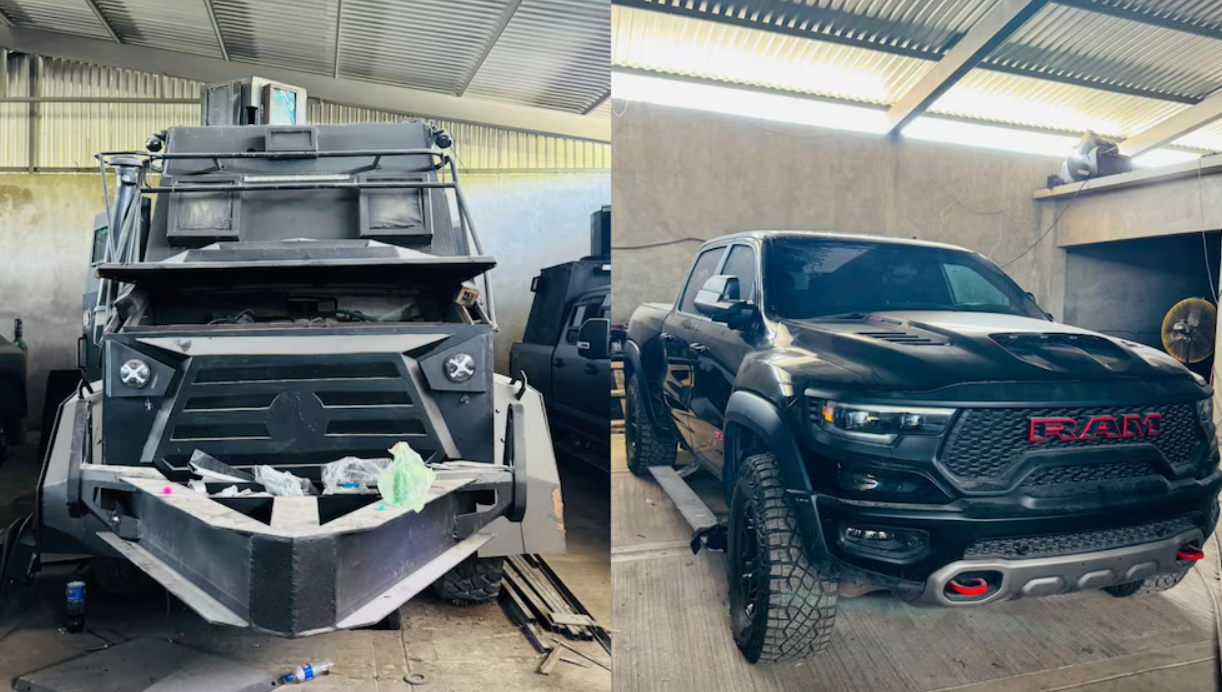 En el punto también se decomisó una camioneta RAM TRX, una camioneta Silverado en proceso de blindaje y una camioneta RAM pick-up blindada.