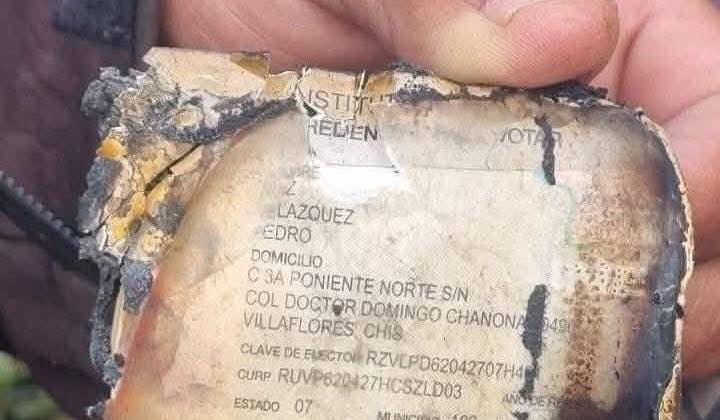 Pedro Ruiz Velázquez, de 63 años, originario de Melchor Ocampo y vecino del ejido Dr. Domingo Chanona, fue identificado gracias a su credencial para votar chamuscada encontrada en la zona del accidente. El cuerpo quedó calcinado.