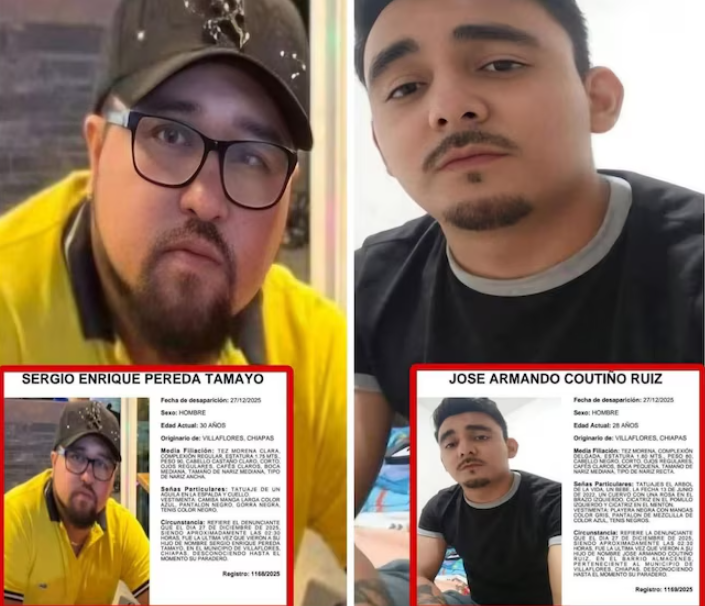 De acuerdo a las investigaciones de la Fiscalía General del Estado (FGE) de Chiapas, Sergio Enrique Pereda Tamayo y José Armando Coutiño Ruiz sería la identidad de 2 de los siete desaparecidos, quienes se presume son propietarios de los bares La Kabala Sport Bar y Karaoke y Anubi’s Discoclub respectivamente.