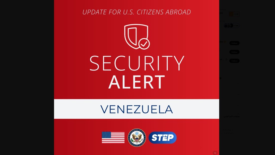 EE.UU. recomienda a sus connacionales en Venezuela que abandonen el país de inmediato debido a preocupaciones por su seguridad, según indicó este sábado la Oficina de Asuntos Consulares del Departamento de Estado.