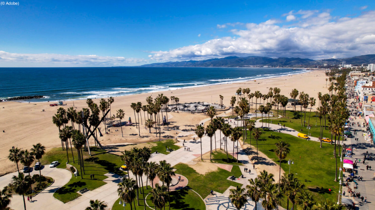 Si bien Hollywood le da a Los Ángeles su reputación como la capital mundial del cine, su clima templado y famosas playas ofrecen mucho más a los visitantes. Los turistas pueden disfrutar de música y gastronomía influenciadas por las grandes poblaciones estadounidenses de origen hispano y asiático de Los Ángeles. El impresionante paisaje desértico del Parque Nacional Joshua Tree está a dos horas en automóvil.