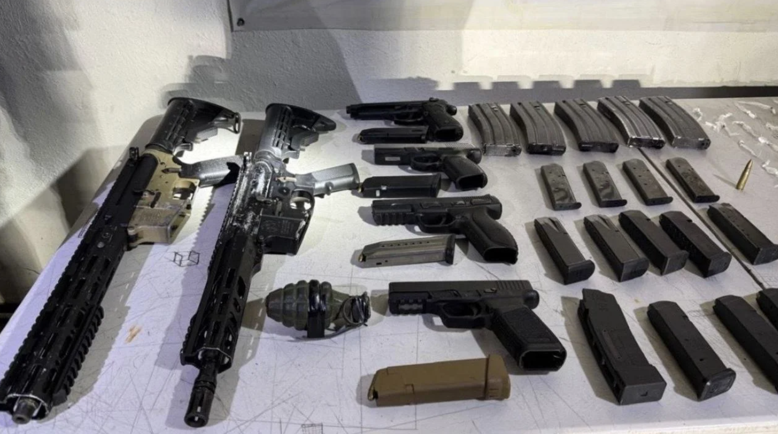En un primer cateo ejecutado ayer viernes, la autoridad aseguró una granada de mano de fragmentación, un arma tipo fusil MP-15 calibre 5.56 x 45 mm con un cargador abastecido con 29 cartuchos del mismo calibre, un arma tipo fusil calibre 5.56 x 45 mm, con un cargador abastecido con 29 cartuchos del mismo calibre y un arma tipo pistola calibre .40, con un cargador con al menos 5 cartuchos del mismo calibre.