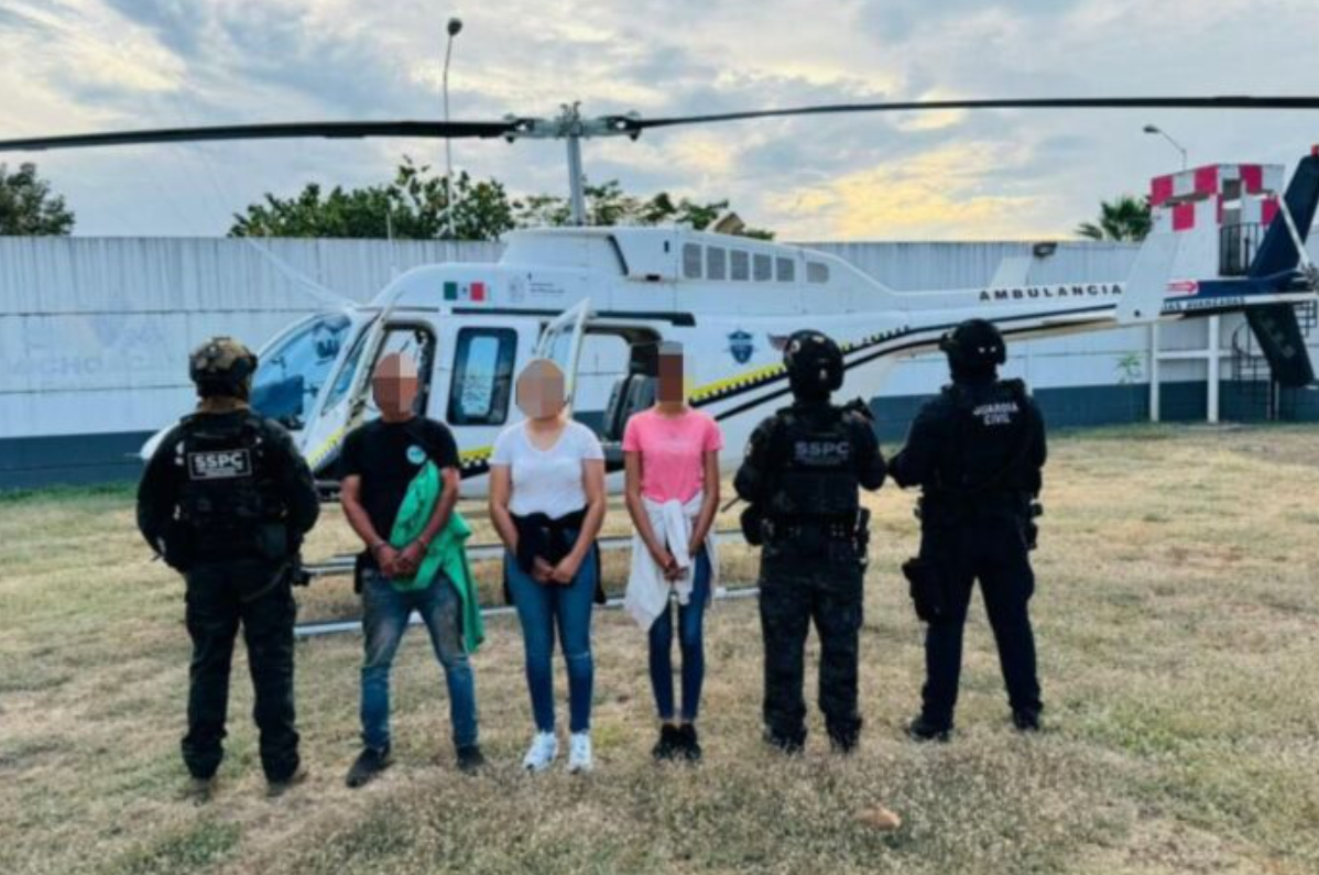 Durante la operación, las autoridades ejecutan la detención de tres mujeres y cuatro hombres, a quienes se les decomisaron ocho armas de fuego de diversos calibres, cartuchos útiles y equipo táctico.