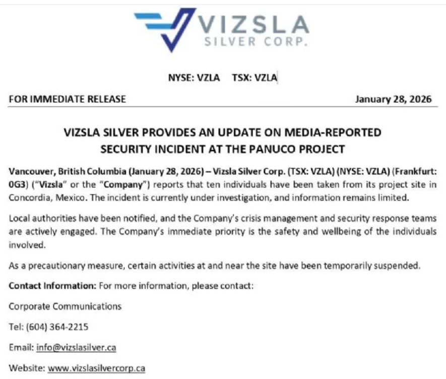 CULIACÁN – Vizsla Silver Group se ha pronunciado sobre los hechos acontecidos en el proyecto Pánuco, enclavado en lo alto de la sierra de Concordia, donde se reporta que fueron privados de su libertad 10 trabajadores de esta empresa con sede en Canadá.