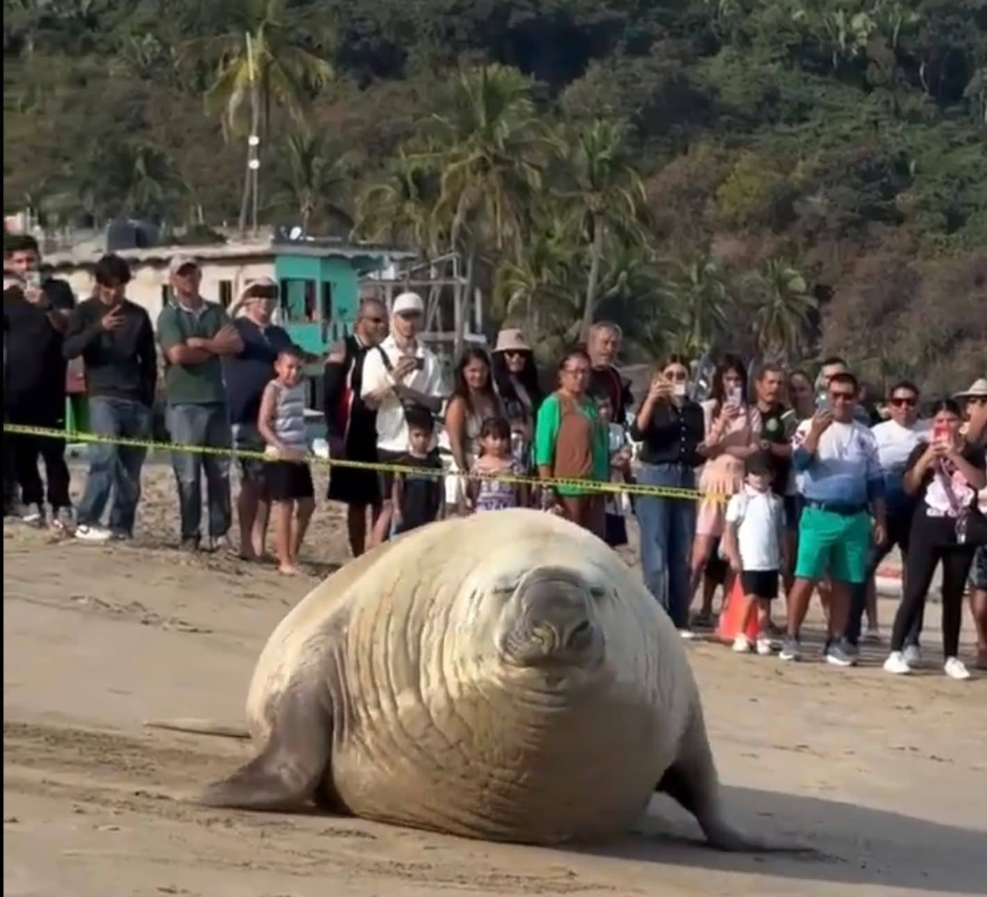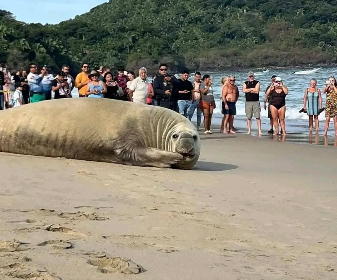 Reportan que en una playa de México fue avistado un gran elefante marino que se encontraba durmiendo tranquilamente a la orilla del mar. Fue visto en Playa Los Ayala, en Nayarit .