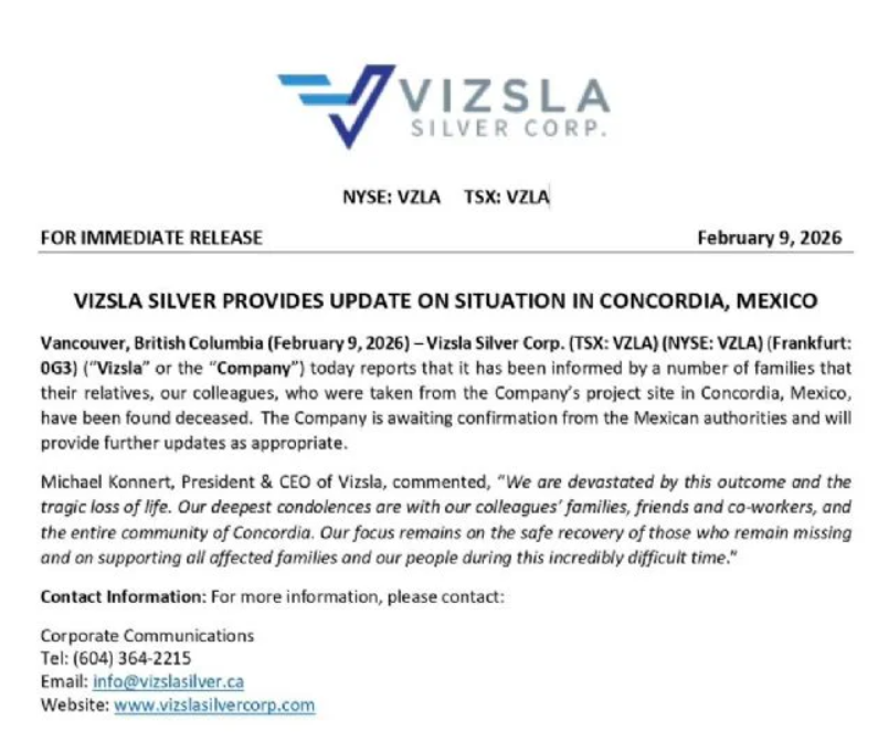 CULIACÁN – La minera de origen canadiense Vizsla Silver Group ha confirmado que los trabajadores secuestrados de su proyecto en Concordia han sido localizados sin vida. A través de un comunicado, la empresa ha detallado que de acuerdo con información proporcionada por los familiares, sus colaboradores fueron encontrados sin vida.