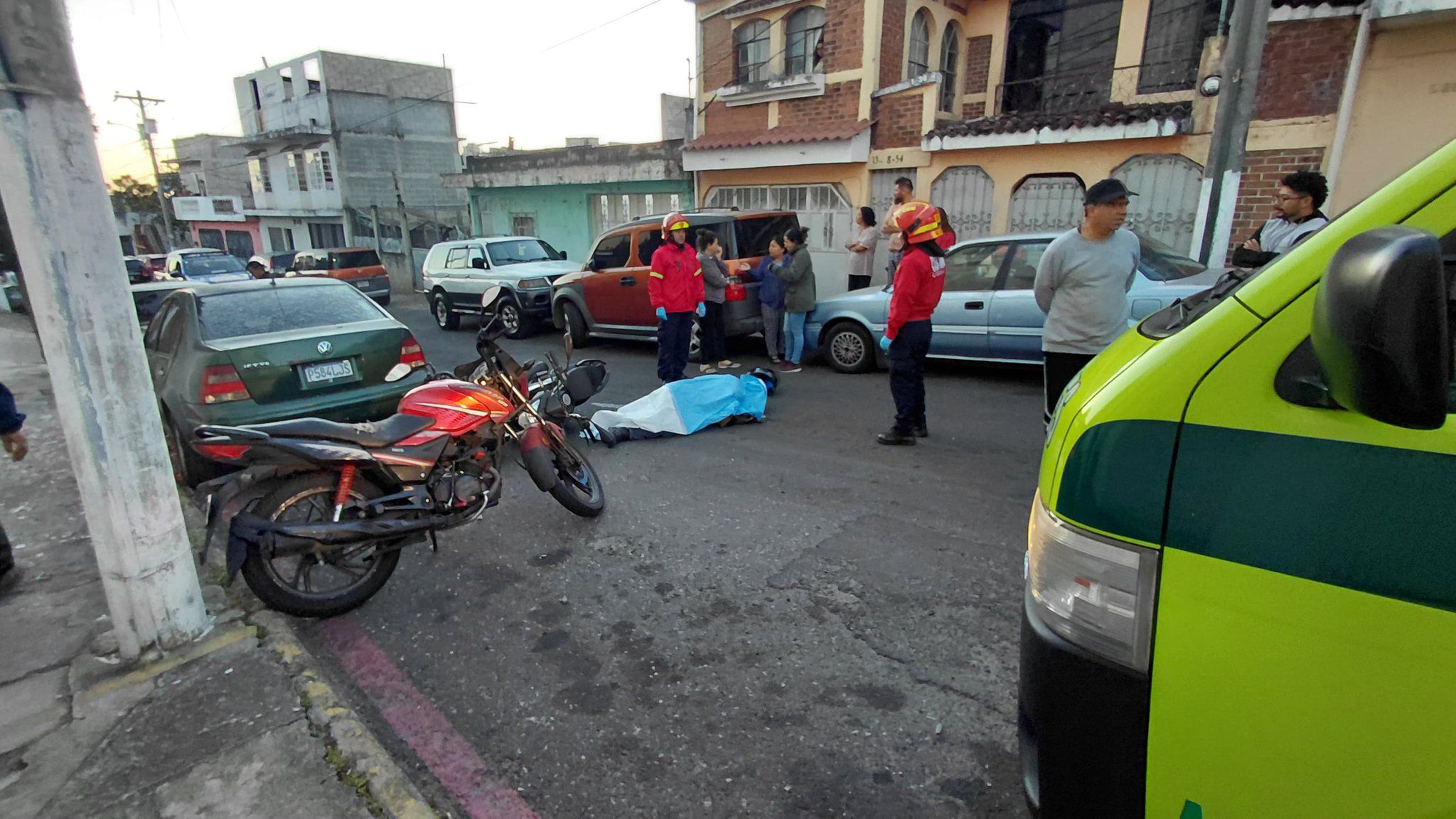 Agentes de la Policía Nacional Civil mantienen acordonada el área para preservar la escena, mientras se coordina la llegada de fiscales del Ministerio Público para las diligencias respectivas.