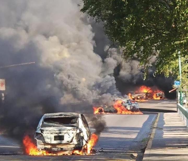 En el Área Metropolitana de Guadalajara ciudadanos reportaron vehículos incendiados en Periférico Norte y Calzada Independencia, a la altura del Zoológico Guadalajara; en Periférico y Tabachines; y en la carretera a Chapala, cerca del Aeropuerto y la zona de El Quince.