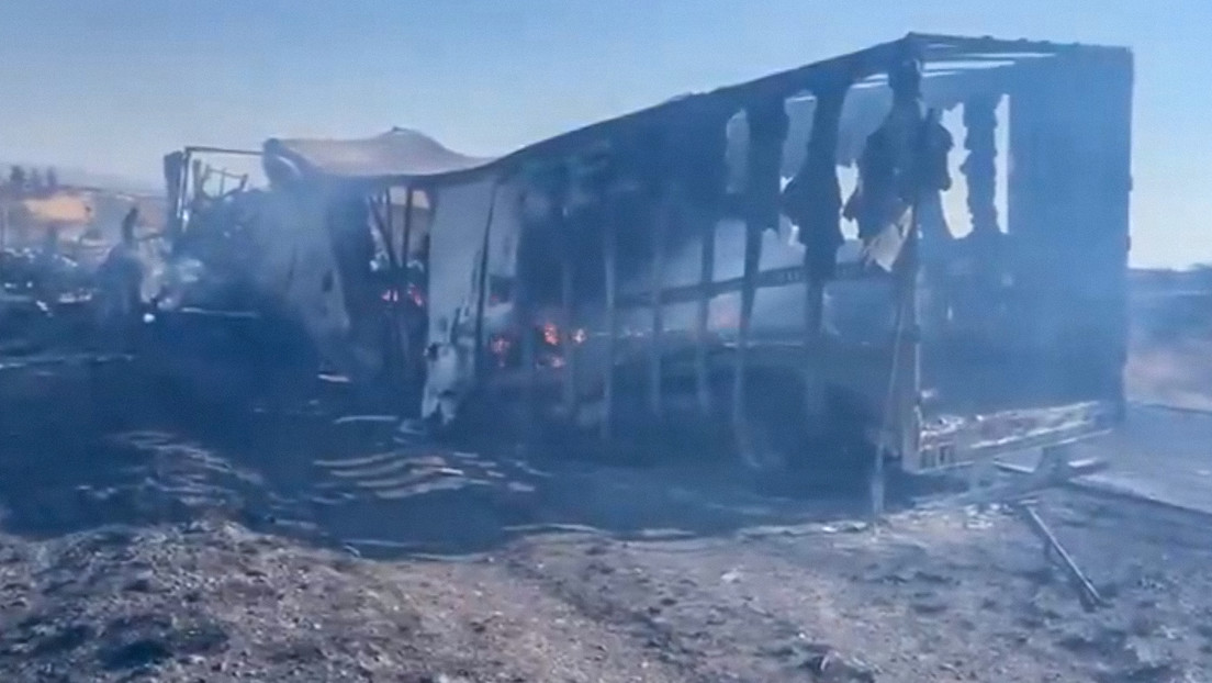 VIDEO: tráiler incendiado en México en medio de la ola de violencia tras abatimiento del ‘Mencho’
